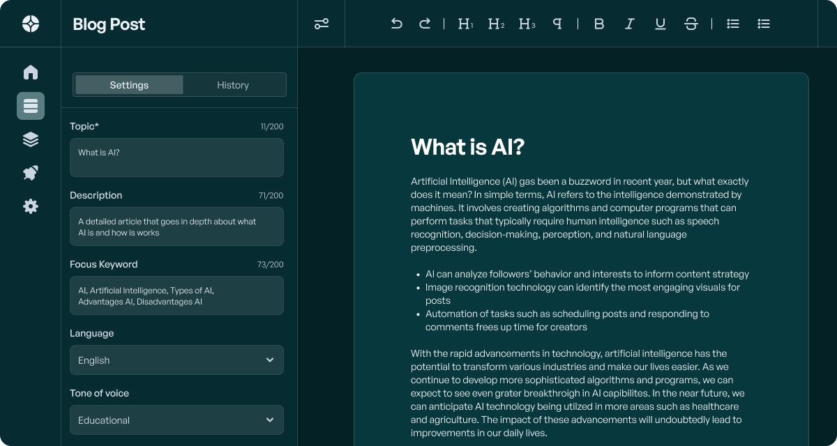 Adjust tone, style, and length instantly to match your specific content goals with easy-to-use customization settings.